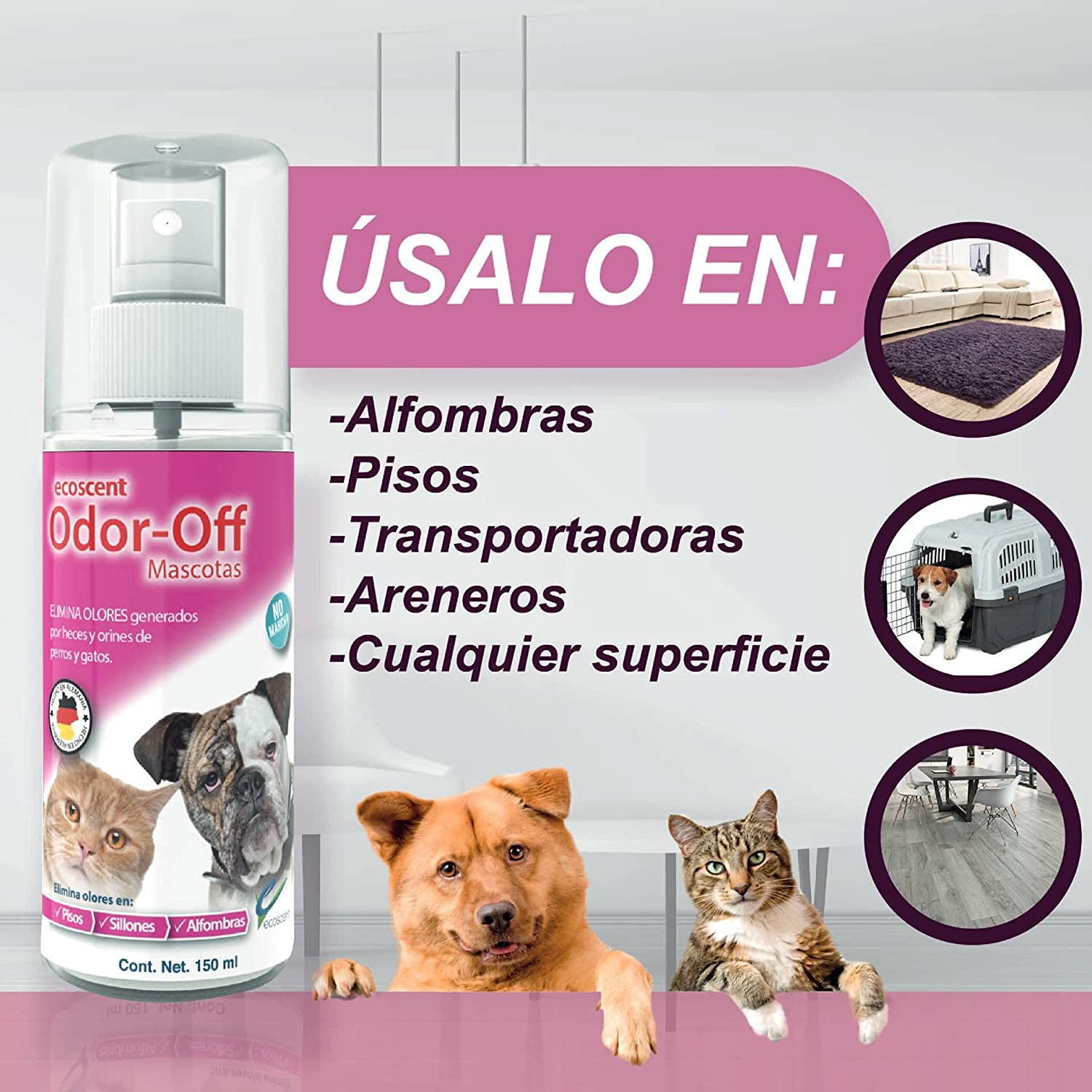 Si tu casa cuenta con mascotas como perros, gatos, hurones, hamsters y demás, sabrás que los malos olores pueden ser cosa de todos los días. Para combatirlos usa ODOR OFF MASCOTAS, una fórmula de aroma original elaborada con aceites esenciales para eliminar de raíz olores ocasionados por las heces y orines de tus mascotas. Ya no disfraces los malos olores de tu perrito, elimínalos de una vez por todas de alfombras, pisos, transportadoras, areneros y sillones de una manera segura para tus mascotas y niños.